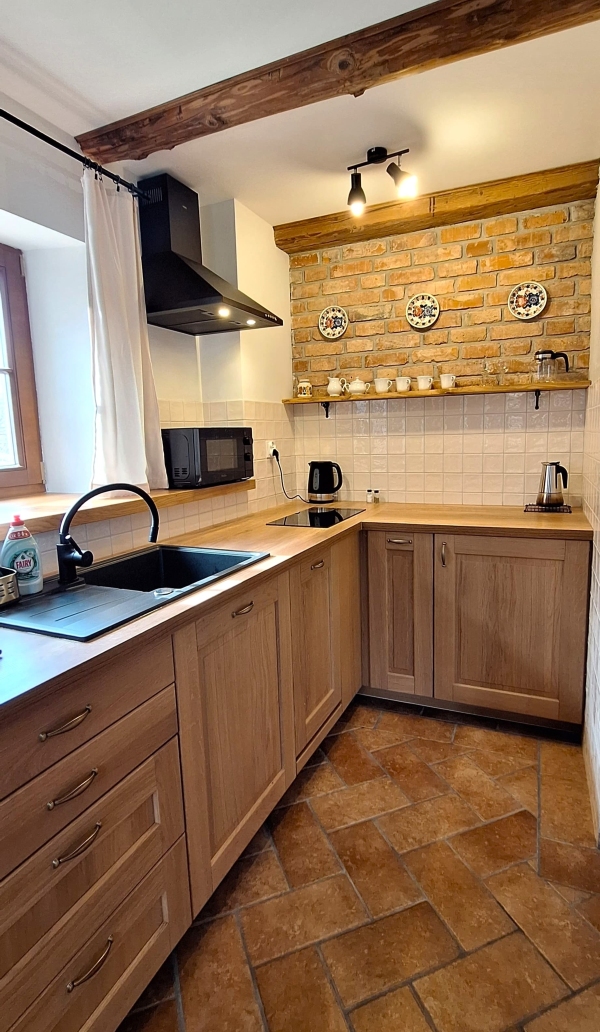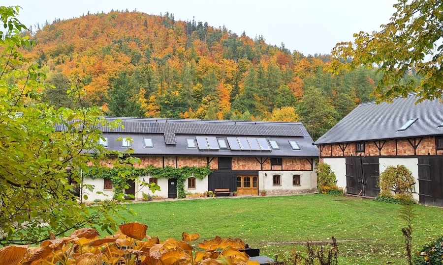 Nasze apartamenty powstały w wyremontowanej starej, 200-letniej, poniemieckiej stodole, która, jak to stodoła, kiedyś była domem dla zwierząt hodowlanych, miejscem na sprzęty gospodarcze i siano. Te czasy jednak dawno już minęły i stodoła zyskała nowe życie. Dziś mieści w sobie 4 apartamenty, trzy na dawnym strychu i jeden na parterze w miejscu gdzie kiedyś przetrzymywane były różnorakie sprzęty.